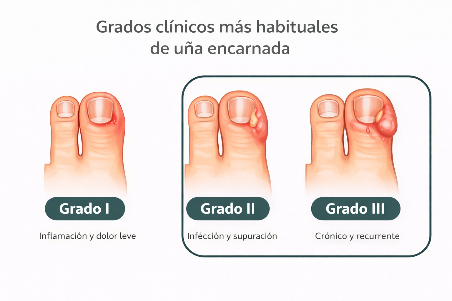 Pero si tu caso es de grado II o III (dolor intenso, inflamación o infección), lo recomendable es una intervención en consulta, mínimamente invasiva.